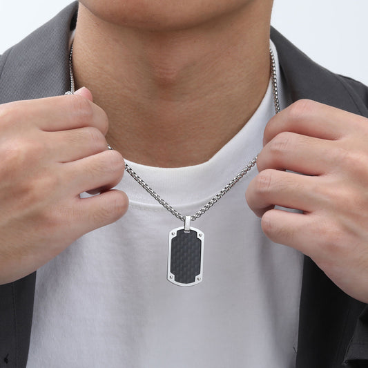 ONYX GEOMETRIC SILVER MEN'S NECKLACE