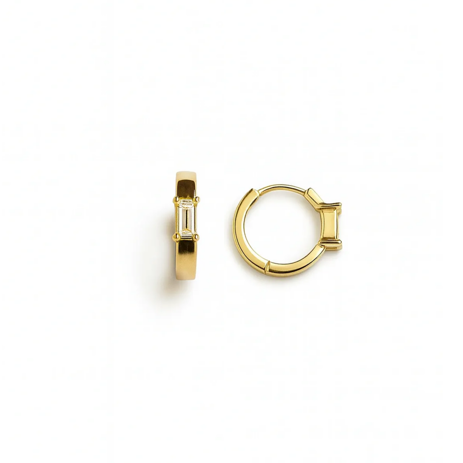 Una versión minimalista con enfoque en los detalles. El diseño limpio se realza con una sola piedra central tipo baguette que aporta elegancia sin esfuerzo. Perfectos para usar solos o en combinación con otros.